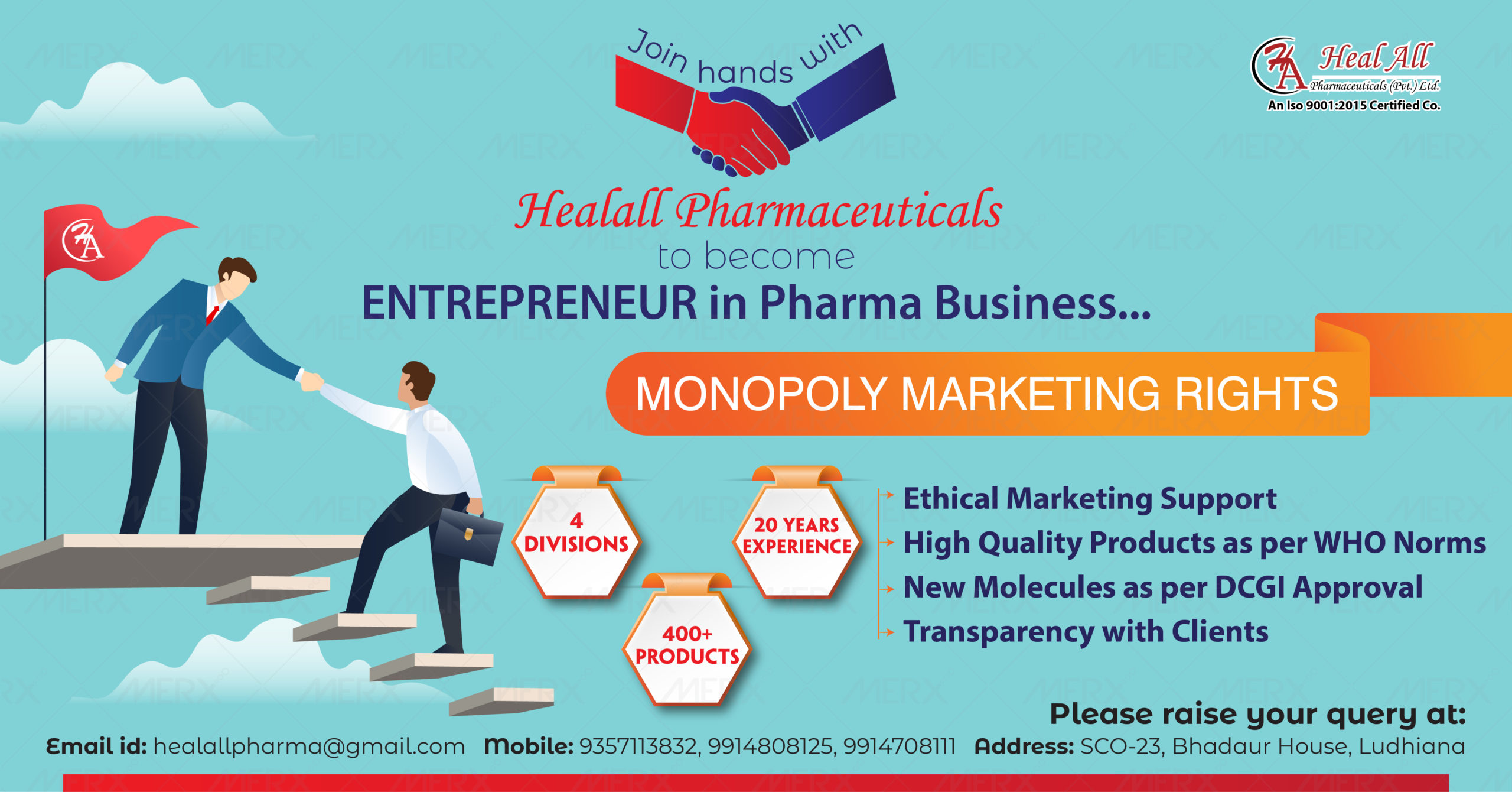 Join hands with Healall Pharmaceuticals to become entrepreneur in pharma business. As a pharma franchise company, we welcome enthusiastic as well as qualified individuals from pan India to become our business associate.