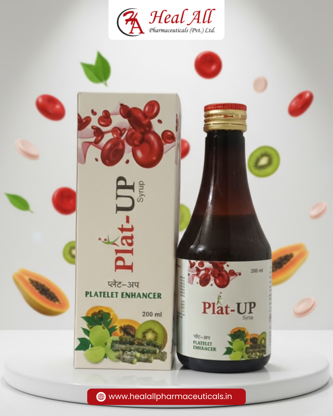 Plat-Up Syrup: is a herbal platelet enhancer formulated to help support healthy platelet count and strengthen immunity. Enriched with natural ingredients, it is beneficial during viral infections, weakness, and low platelet conditions, promoting faster recovery and overall vitality.